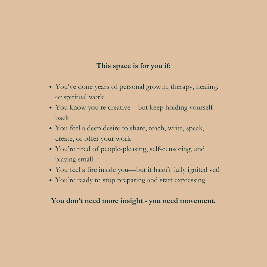 Fire Starter is for women who are no longer here to endlessly process—but to create, express, and be seen in their gifts.